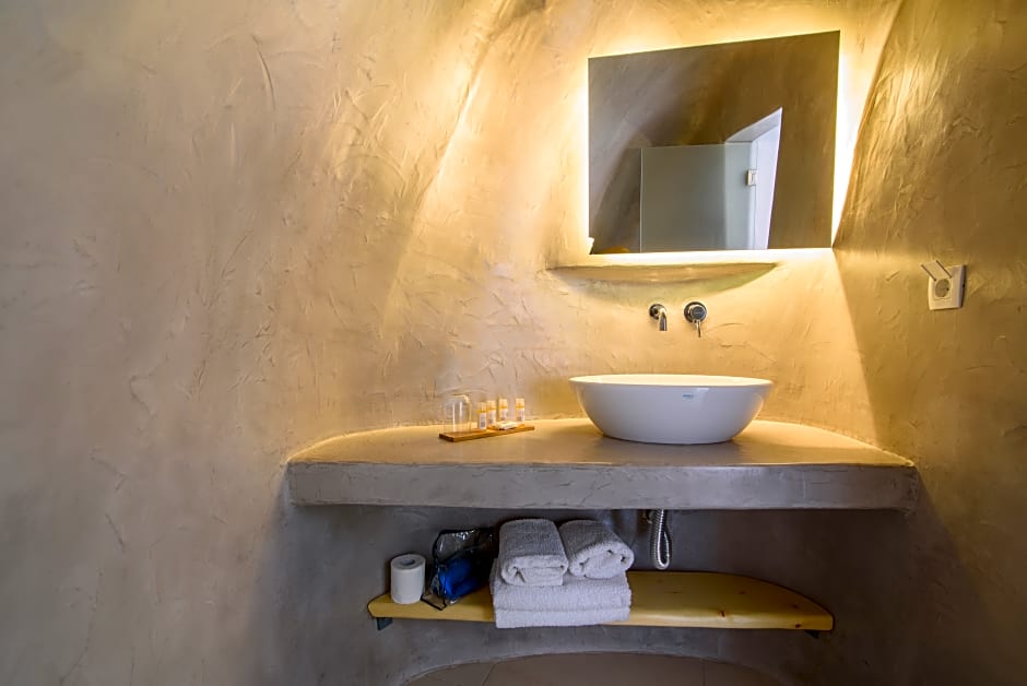 WITH CALDERA VIEW AND PRIVATE JACUZZI –Β- is 323 square feet and includes a king-size bed 150-183 width plus living room and hairdryer.
